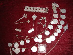 Mieder, Schultertuch und Armband