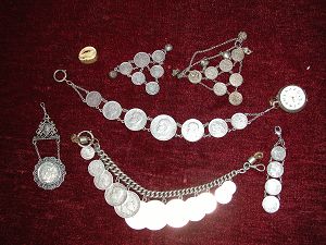 Gefasste Silbermümzen für