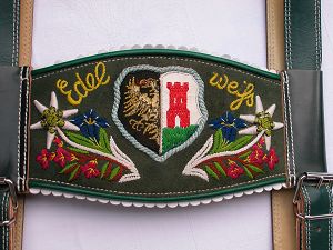 Krawatte und Lederhose mit Taschenuhr